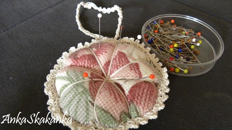 Na początek uszyłam i przyozdobiłam dwie poduszki na igły.